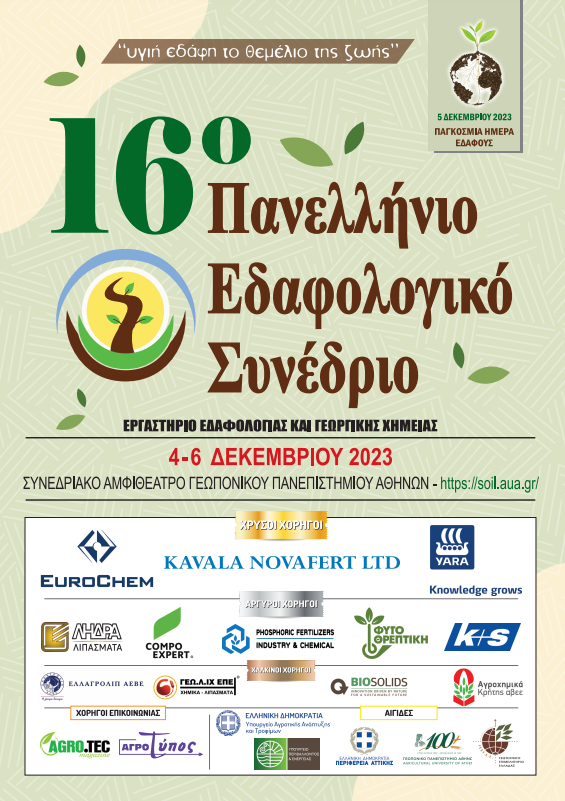 Ξεκίνησε τις εργασίες του το 16ο Πανελλήνιο Εδαφολογικό Συνέδριο που διοργανώνεται από το Εργαστήριο Εδαφολογίας και Γεωργικής Χημείας του Γεωπονικού Πανεπιστημίου Αθηνών, με την ευγενική χορηγία επικοινωνίας του Agro.tec.