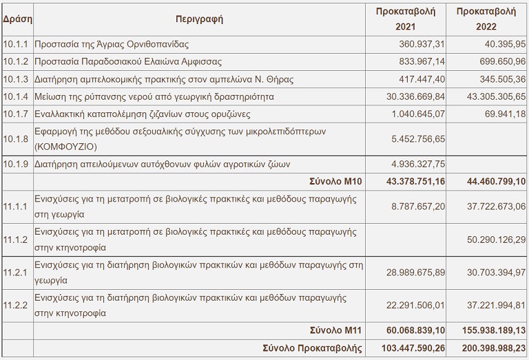 Σε ανακοίνωση του ο ΟΠΕΚΕΠΕ σχετικά με τις πληρωμές της προκαταβολής 70% που αφορούν δράσεις των μέτρων Μ10 και Μ11 «Αγροπεριβαλλοντικά Μέτρα 2022» ενημερώνει ότι έχει καταβάλει 200,3 εκατομμύρια ευρώ, έναντι της αντίστοιχης περσινής προκαταβολής του 2021 που ήταν 103,4 εκατομμύρια ευρώ.