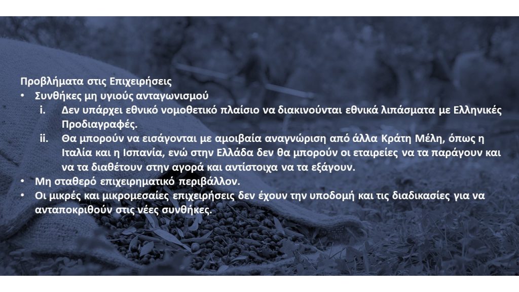 Να σημειώσουμε πως είναι απορίας άξιο το γεγονός της καθυστέρησης της έκδοσης της ΚΥΑ, όπως τονίστηκε κατά τη διάρκεια της Συνέντευξης Τύπου, από τα μέλη του ΣΠΕΛ, καθώς εδώ κι ενάμιση χρόνο γίνονταν συζητήσεις με το Υπουργείο σε ένα αγαστό πλαίσιο συνεργασίας. Ωστόσο, οι διαδικασίες πάγωσαν, χωρίς να έχει προχωρήσει το θέμα που πλέον επείγει δραματικά, καθώς από τις 16 Ιουλίου 2022 τέθηκε σε ισχύ ο Νέος Κανονισμός για τα Προϊόντα Λίπανσης, Καν. ΕΕ 1009/2019, καταργώντας τον προηγούμενο Κανονισμό ΕΚ 2003/2003. Ο προηγούμενος Ευρωπαϊκός Κανονισμός 2003/2003, που ίσχυε την τελευταία 20ετία, όριζε τον τρόπο που κυκλοφορούν τα Ανόργανα Λιπάσματα, τα οποία αντιπροσωπεύουν πάνω από το 85% των λιπασμάτων που κυκλοφορούν στην Ελληνική Αγορά. «Ο νέος Ευρωπαϊκός Κανονισμός, αντίθετα με τον προηγούμενο, δεν προβλέπει την υποχρεωτική εφαρμογή του, αλλά δίνει τη δυνατότητα στα Κράτη Μέλη να κυκλοφορούν προϊόντα λίπανσης είτε με βάση τον ίδιο τον Κανονισμό ΕΕ 1009/2019, είτε με βάση την Εθνική τους Νομοθεσία. Αυτή τη δυνατότητα, της προαιρετικής εναρμόνισης, έχουν ήδη αξιοποιήσει όμορες και ανταγωνιστικές χώρες, όπως η Ισπανία, η Πορτογαλία και άλλες. Τον ίδιο δρόμο μπορεί και πρέπει να ακολουθήσει και η Ελλάδα προχωρώντας στην έκδοση ΚΥΑ, ώστε όσα προϊόντα λίπανσης υπάγονταν στον Κανονισμό ΕΚ 2003/2003, στη βάση συγκεκριμένων τροποποιήσεων, να ενταχθούν στις προβλέψεις της ΚΥΑ ως Εθνικά λιπάσματα».