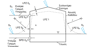 - Στο όριο μεταξύ των ζωνών 0Α προς τη ζώνη 1: SPD κλάσης Ι.