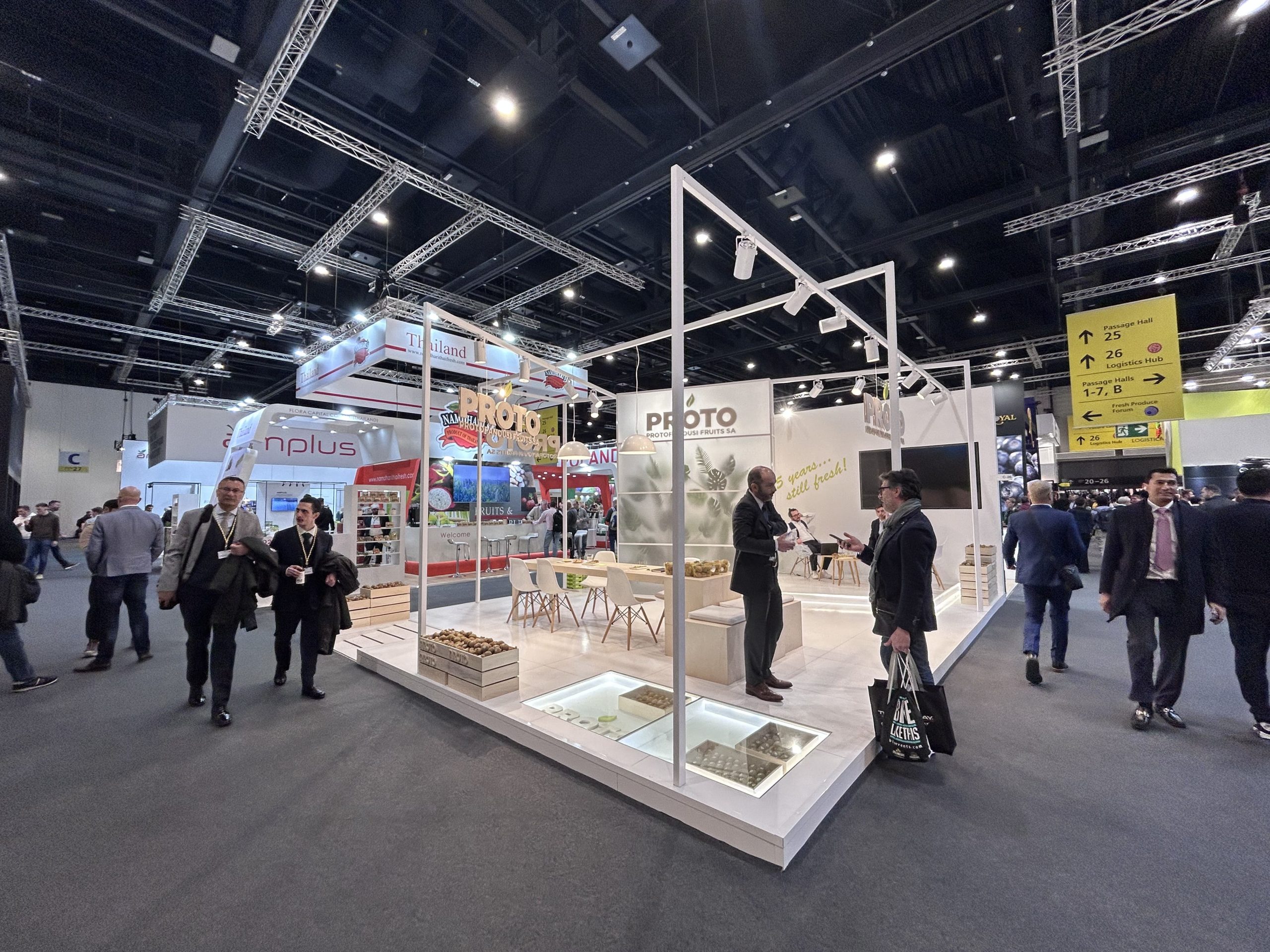 Η επιτυχημένη διοργάνωση της ελληνικής συμμετοχής από την Great Exhibitions οφείλεται στα υψηλής αισθητικής περίπτερα που κατασκευάζουμε, την άρτια προετοιμασία και τις προσκλήσεις σε διεθνείς αγοραστές, που λειτούργησαν ουσιαστικά, βοηθώντας τις συμμετέχουσες εταιρείες να βρουν νέα δίκτυα διανομών, αγοραστές, αλυσίδες Super Market, χονδρέμπορους κ.ά. Μάλιστα αξίζει να σημειωθεί ότι έπειτα από πολλά χρόνια υπήρξε γενική αναδιαμόρφωση των εκθεσιακών χώρων της Fruit Logistica και η Great Exhibitions εξασφάλισε προνομιακό χώρο στο HALL 7.2c, το οποίο αποτελεί πέρασμα για όλα τα HALLS της έκθεσης. Αυτό οδήγησε σε μεγάλη αύξηση των επισκεπτών στο εν λόγω HALL και συντέλεσε στην αύξηση των επισκεπτών στα περίπτερα των εκθετών!
