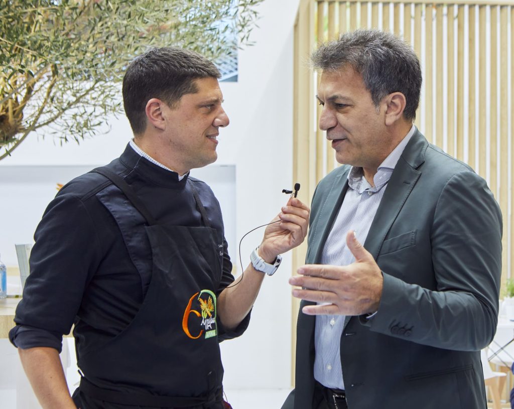 Επισκέπτες από 4 ηπείρους είχαν την ευκαιρία να γνωρίσουν και να δοκιμάσουν την πατενταρισμένη προϊοντική σειρά Ελαιοπουλάκι® – OliVChicken® αλλά και όλα τα προϊόντα “Αγγελάκης“, που παράγονται με τις αυστηρότερες προδιαγραφές ασφάλειας και ποιότητας. Δημιουργικές συνταγές με κοτόπουλο, δια χειρός των σεφ Αλεξάνδρου Παπανδρέου και Ντίνας Νικολάου, ανέδειξαν την κορυφαία ποιότητα και γεύση των προϊόντων Αγγελάκης, χαρίζοντας στιγμές απόλαυσης στους επισκέπτες, σε μια σειρά από live cookings στο περίπτερο της εταιρείας.