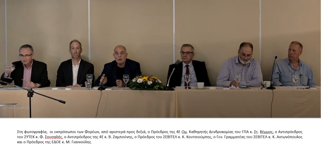 Ο Ομότιμος Καθηγητής Δενδροκομίας του ΓΠΑ και Πρόεδρος της 4Ε, κ. Σταύρος Βέμμος αναφέρθηκε στην ποιότητα του ελαιολάδου και στους κινδύνους επιμόλυνσής του. Ανέπτυξε τους πιθανούς επιμολυντές του ελαιολάδου κατά τη διαδικασία της παραγωγής και της συλλογής των καρπών. Επικεντρώθηκε στους κυριότερους από αυτούς που είναι οι παρακάτω: Υπολείμματα γεωργικών φαρμάκων (φυτοφάρμακα), οι υδρογονάνθρακες ορυκτελαίων (MOSH και MOAH), οι πολυκυκλικοί αρωματικοί υδρογονάνθρακες (PAH) και οι πλαστικοποιητές, καθώς και στους τρόπους επιμόλυνσης του ελαιόκαρπου από τους επιμολυντές. Αναφέρθηκε στα Ανώτατα Επιτρεπτά Όρια Υπολειμμάτων (MRLS, Maximum Residue Limits) που έχει θεσπίσει η ΕΕ, που είναι οι μέγιστες συγκεντρώσεις των επιμολυντών στο ελαιόλαδο. Τέλος, ανέπτυξε τις ορθές καλλιεργητικές πρακτικές και τον κατάλληλο τρόπο συλλογής των καρπών από τους ελαιοπαραγωγούς για την αποφυγή του κινδύνου επιμόλυνσης του ελαιοκάρπου και κατ’ επέκταση του ελαιολάδου, που θα υποβαθμίζει την ποιότητά του και θα το καθιστά επικίνδυνο για την υγεία του καταναλωτή.