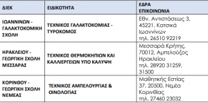 Το έτος κατάρτισης 2022-2023 θα λειτουργήσουν με πρωινό ωράριο, έξι (6) ΙΕΚ στις Περιφερειακές Ενότητες Ιωαννίνων, Ηρακλείου, Κορίνθου, Λάρισας, Αττικής και Τρικάλων, με τις παρακάτω επτά (7) ειδικότητες: